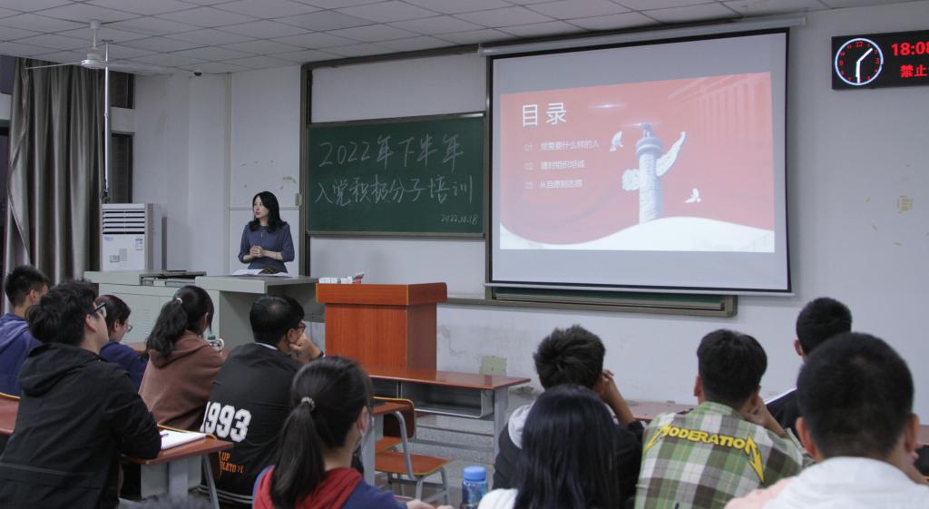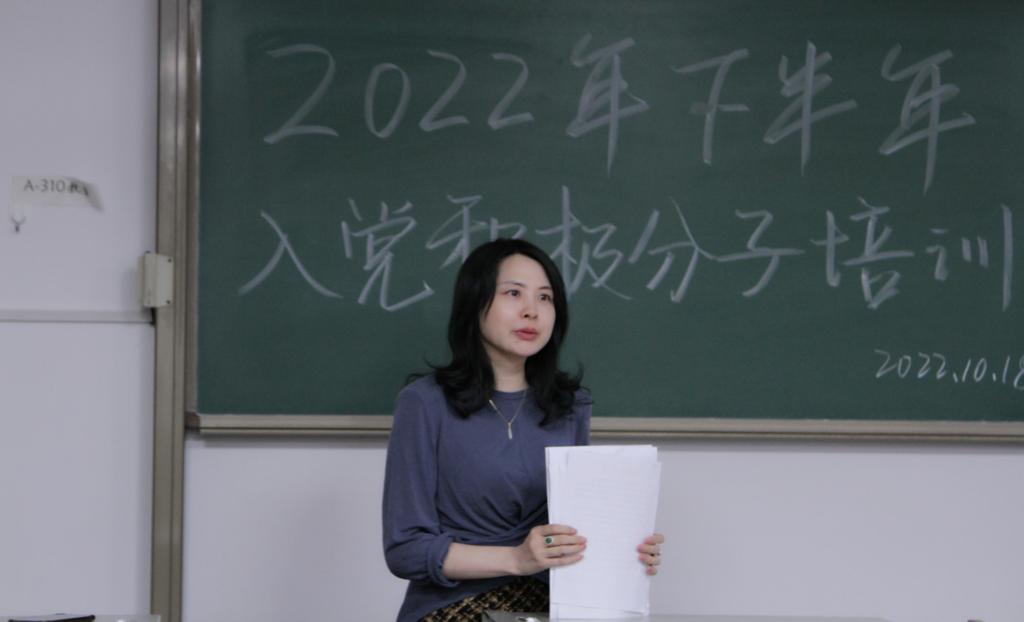 (通讯员 刘昕竹/文 赵臻浩/摄)2022年10月18日晚上6时,永利3044集团官网在武教A310开展了入党积极分子培训,院党委副书记刘娥讲授“青春心向党,争做‘党’中人”主题党课,85名入党积极分子参加。
