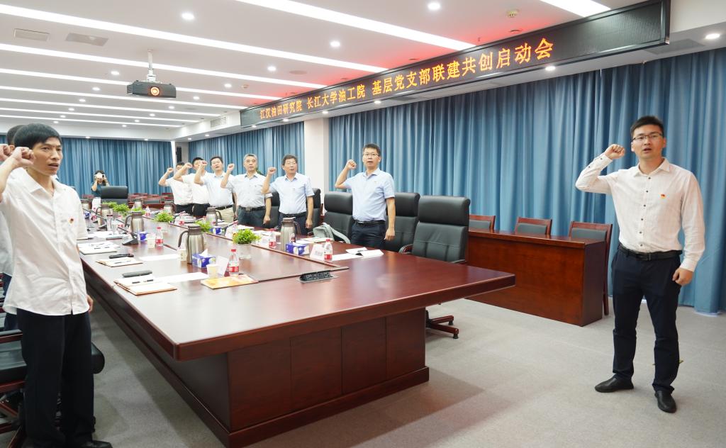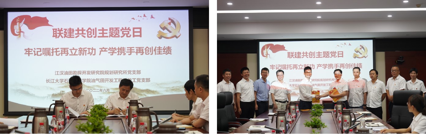 (通讯员 周晓峰)为进一步推进校企结对共建,切实发挥党建引领作用,6月30日上午,永利3044集团官网油气田开发系教工党支部与江汉油田勘探开发研究院规划研究所党支部联建共创启动会暨“牢记嘱托再立新功 产学携手再创佳绩”支部主题党日活动在江汉油田勘探开发研究院举行。研究院党委书记胡心玲、副院长荣焕青、院专家、联建支部党员代表,学院党委书记张光明、院长江厚顺、副院长李忠慧、联建支部党员代表等20余名同志参加,研究院规划研究所党支部书记康波主持。