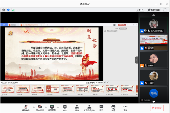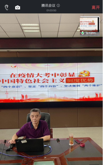 (通讯员 王国庆)2020年6月30日下午,永利3044集团官网在腾讯会议开展了“在疫情大考中彰显中国特色社会主义制度优势”专题形势政策课。本次课程由石油工程学院党委书记张光明主讲,全院在读本科生、研究生党员参与学习。