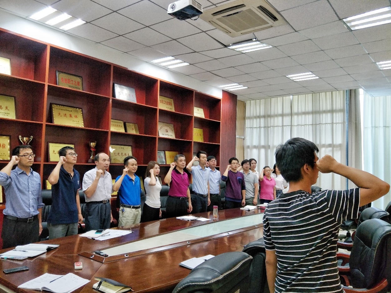 会上,全体党员面对党旗,紧握右拳,庄严重温入党誓词。张光明书记带领中心组成员认真学习了《中央宣传部负责人就〈中国共产党宣传工作条例〉答记者问》,《关于深化新时代学校思想政治理论课改革创新的若干意见》,“直面现实 负重前行”——党委书记朱业宏在中层干部培训研讨会上的讲话,“不忘初心,牢记使命,扎实推进“双一流”建设”——校长冯征在2019年暑期工作研讨会上的讲话,《永利3044集团官网学院党政联席会议议事规则》,《永利3044集团官网二级党组织委员会议事规则(试行)》。