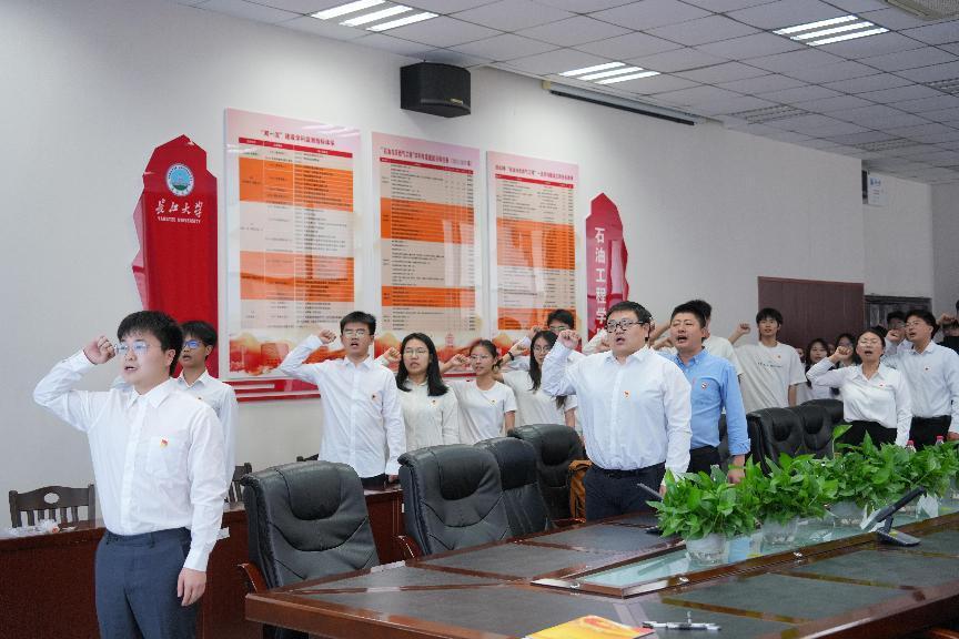 在组织生活环节,研究生第二党支部汪伟同志带领全体党员重温入党誓词,本科生22203团支部副书记贾正哲同志带领团员重温入团誓词,激昂的宣誓声表达了同志们对党的忠诚和为共产主义事业奋斗的决心。