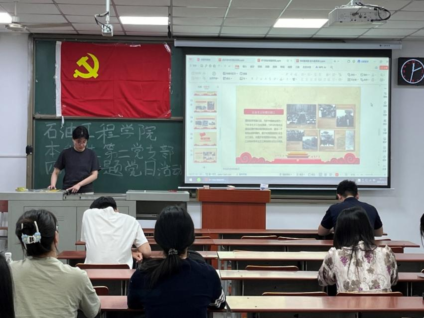 接着,由徐丰苗、汤羽翔同志讲授微党课。首先,他们指出党史是教科书,总结经验教训,助力传承传统、提升能力。随后分“新民主主义革命时期“,”社会主义革命和建设时期“,”改革开放新时期“三阶段梳理,展示中国共产党历史给予时代的意义,最后总结 “没有共产党就没有新中国”,强调党在新世纪肩负推进现代化、完成统一、维护和平的使命,需抓住机遇实现民族复兴。