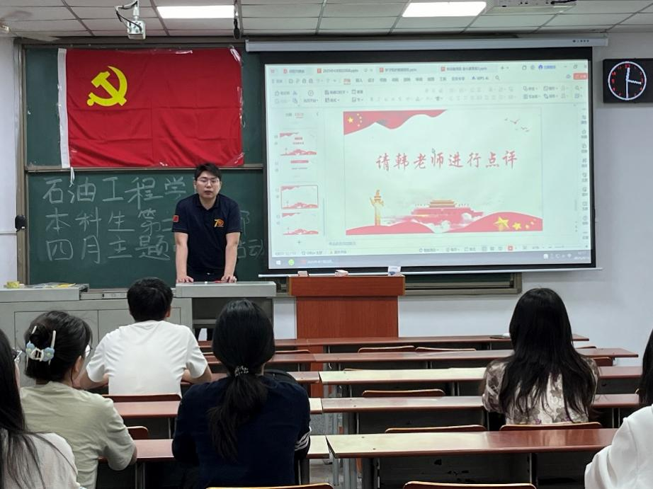 最后,党支部书记韩清越老师对党日活动进行总结,他充分肯定党员同志能够紧扣党课主题、结合个人实际进行学习分享,体现出对党内法规的深刻理解,同时指出需进一步深化党史党章的系统性学习以增强历史纵深感。他强调全体党员应切实发挥先锋模范作用,在日常学习生活中树立标杆意识、引领优良学风,主动传播正确价值导向,并积极参与综合素质提升工作,协同营造积极向上的校园成长环境。