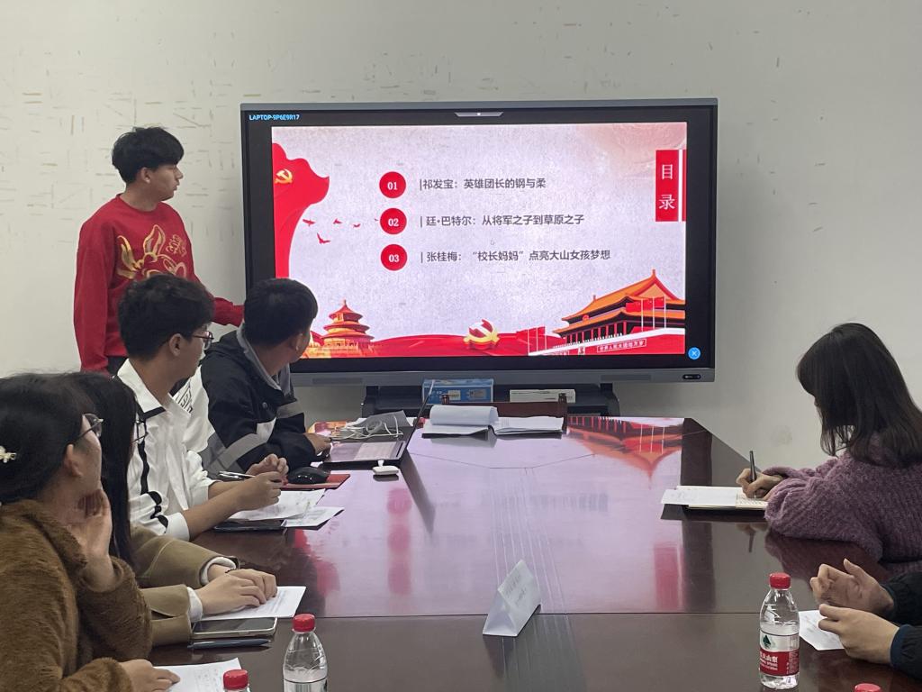 首先,同志们集体诵读党章并学习了党的创新理论。随后,大会开展主题研讨“作为一名学生党员,如何培养调查研究的能力”,魏嘉同志从扎稳马步强基础,长练出新为路径,实战检验作保障三个方面拨云见雾地阐释了如何提升调查研究能力。龚焕文同志认为在调查研究中要注重“深入实际,实事求是,创新方法”这三个方面。在微党课分享环节,李万达同志以“榜样”为主题,讲述了祁发宝团长,张桂梅校长的故事,号召支部党员同志作为大学生应学习传承榜样的优秀品质。袁银兰同志领学了学习贯彻习近平新时代中国特色社会主义思想主题教育精神,传达了全体党员深化党内教育重要实践的要求。