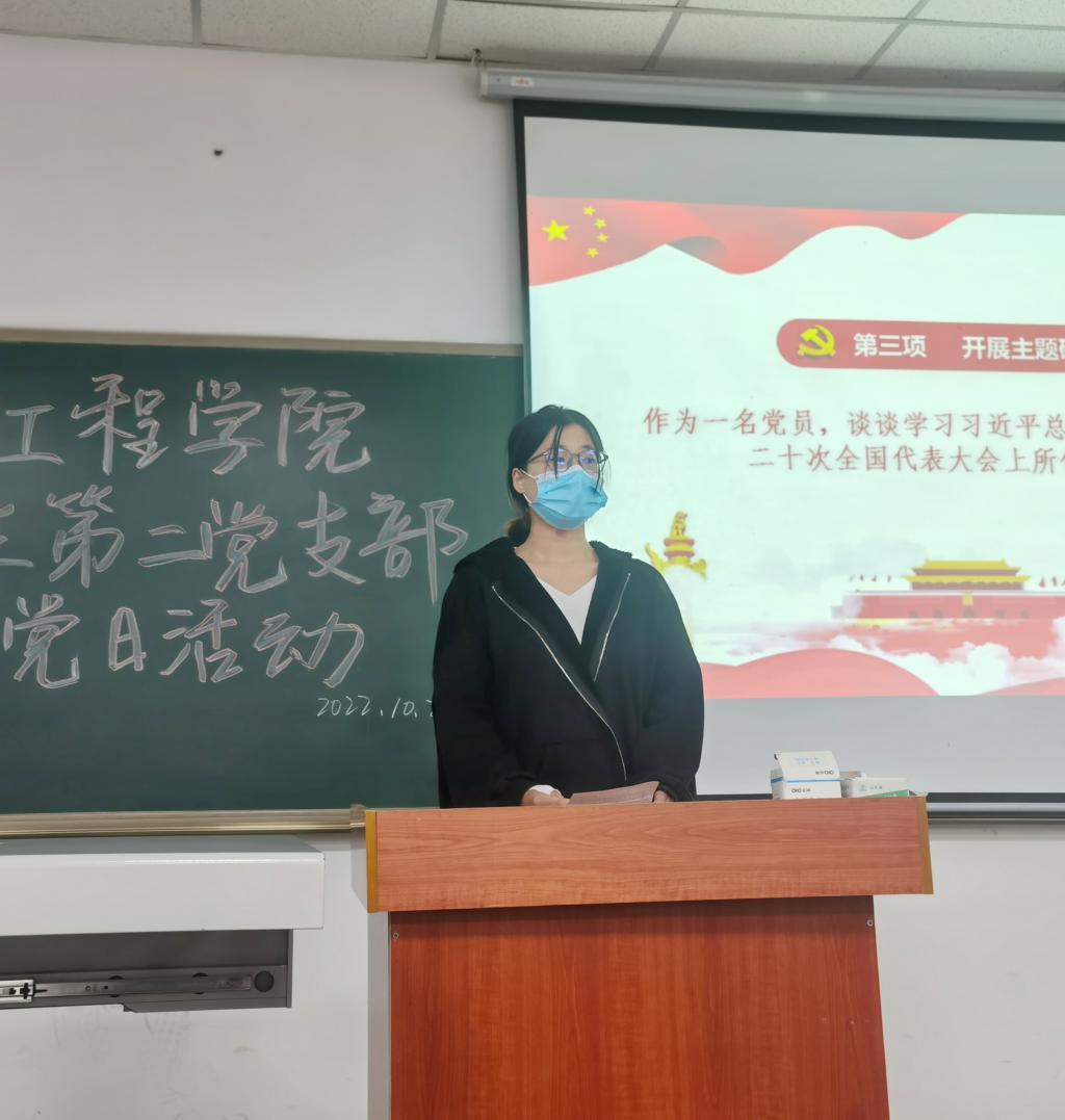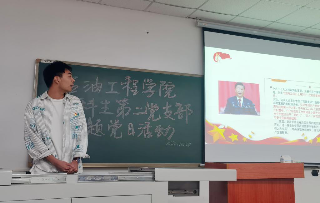 (通讯员任堂政)2022年10月20日下午五时二十分许,永利3044集团官网本科生第二党支部于A-204召开十月党日主题活动。本次会议由支部冯贯榆同志主持,支部31名本科生党员、党委副书记刘娥参会。