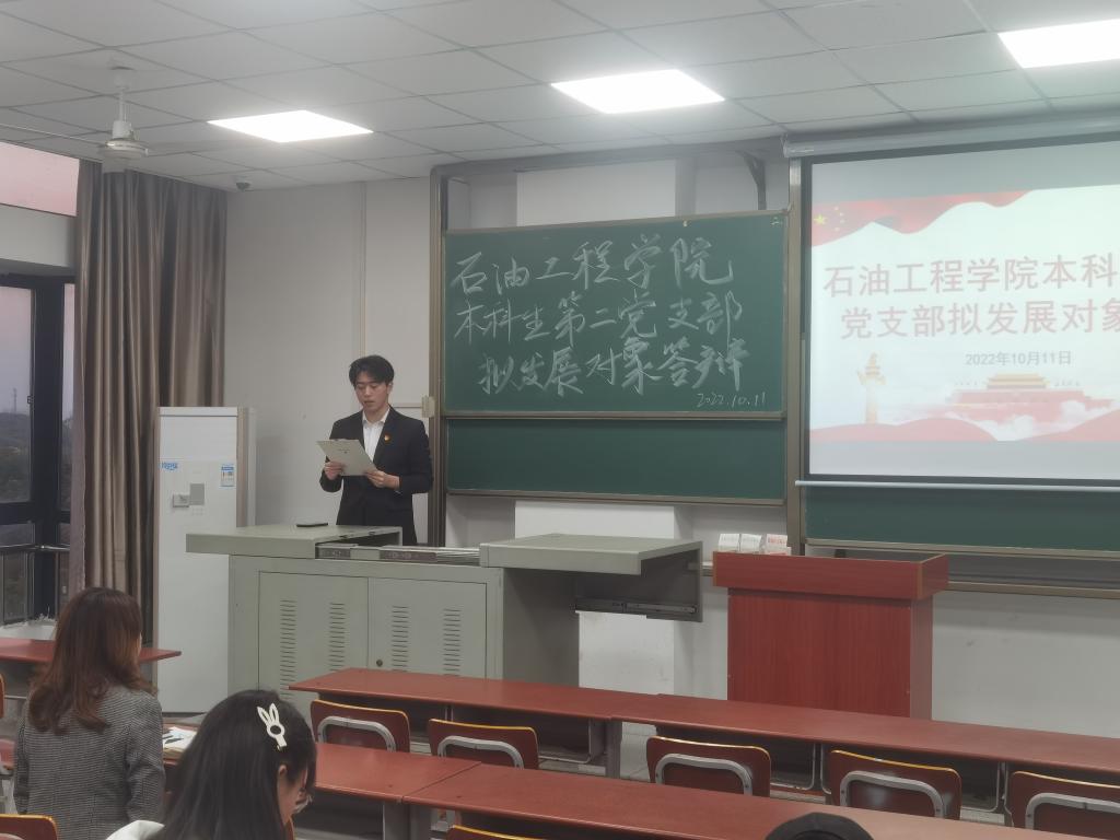 (通讯员 任堂政)2022年10月11日下午六时,永利3044集团官网本科生第二党支部于B-402召开拟发展对象预审答辩。本次会议由支部任堂政同志主持,党委副书记刘娥老师,支部29名党员,支部16名拟发展对象参会。