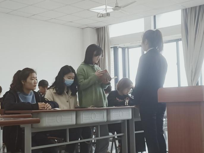 大会伊始,全体起立奏唱国际歌。其后,张欣、曾思佳两名发展对象逐一走上台面对党旗进行庄严的入党宣誓,并向党组织全面深刻地剖析自己的优缺点及未来改进的方向。通过平常的了解表达自己的意见,两位入党介绍人向与会人员介绍了该同学的思想政治和学习生活情况。接着,由支委向与会人员宣读其政治审查情况。该名同学入党情况需要大会进行统一的讨论,许多同志对本次的拟发展对象指出了其存在的问题并对他们日后的工作与学习提出了建议并给予了殷切的期望。
