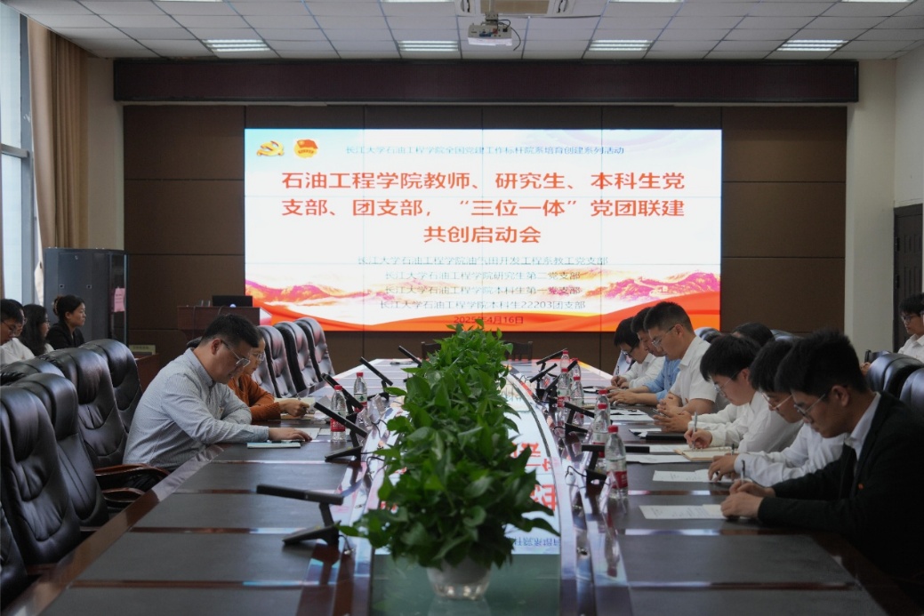 (通讯员 许文俊)4月16日下午,永利3044集团官网在石油科技大楼B113会议室举行"三位一体"党团联建共创启动会暨"党团融合聚力 科教协同育人"主题党日活动。学院师生代表、本科生党支部、团支部等50余人参加活动,共同开启党建引领团建的创新育人实践。活动由油气田开发工程系教工党支部书记许文俊同志主持。
