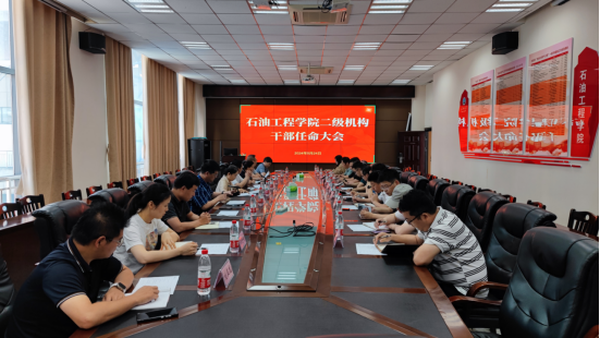 根据学院党委工作安排,5月24日下午,永利3044集团官网在石油科技大楼B113会议室以线上线下结合的方式召开了二级机构干部任命大会,会议由院党委副书记张昊主持,全体院领导、新任干部,教师代表参加会议。