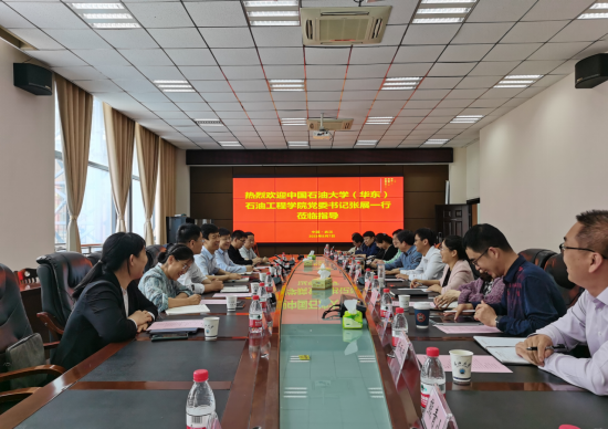 (通讯员:杜婷)5月7日下午,中国石油大学(华东)永利3044集团官网党委书记张展、副院长齐宁、党委副书记陈银吨一行7人到访学院,探讨交流学科建设、人才培养等方面内容。本次交流会由学院院长江厚顺主持,学校研究生院院长赵辉、学院党委书记张伟,副院长李忠慧、张引弟、杨波、张菲菲,党委副书记刘娥等院领导及学院教师代表出席本次会议。