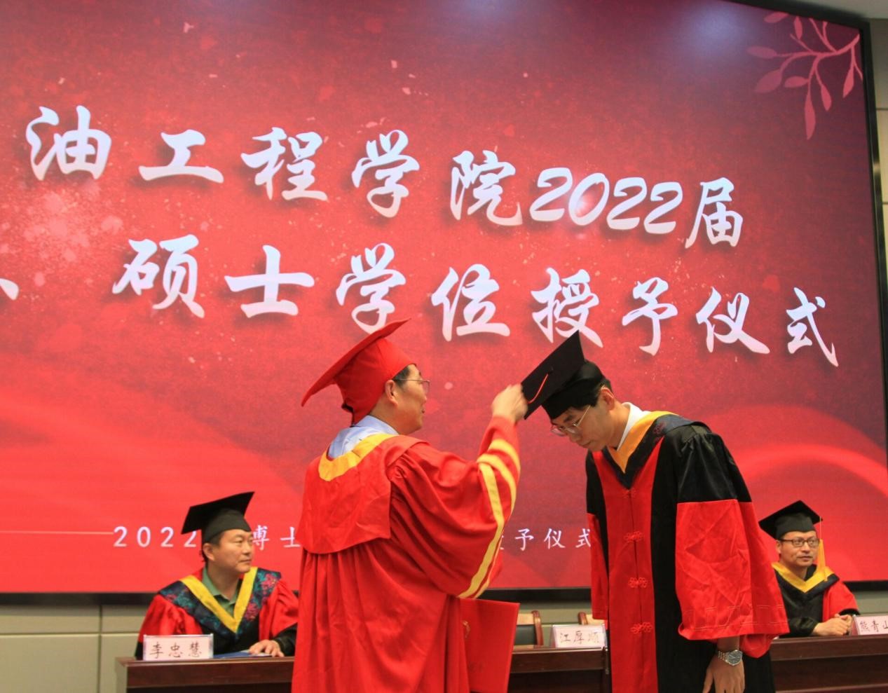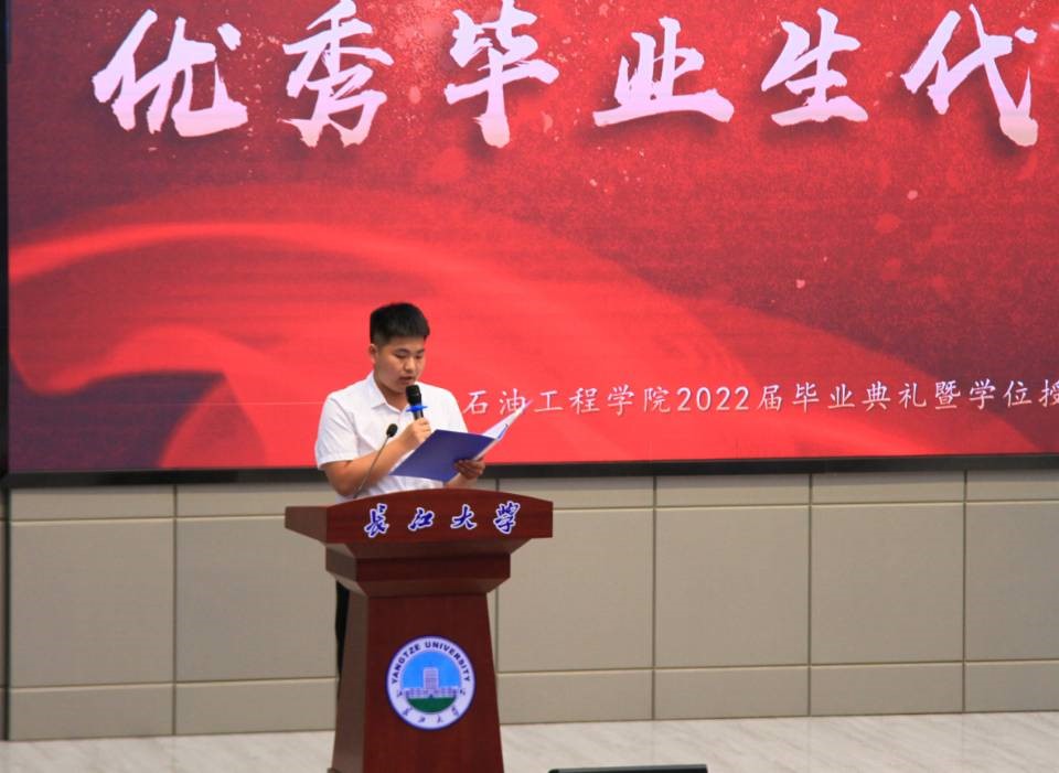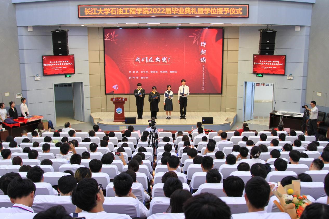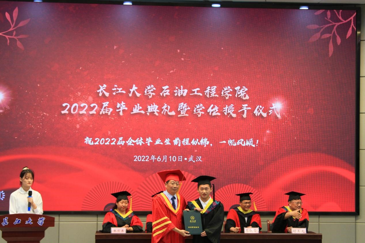 毕业典礼在大合唱《江汉石油之歌》中落下帷幕。2018年的初秋,你们乘风破浪踏歌而来;2022年的盛夏,你们雄心壮志学成出师。知音湖水永远碧波荡漾,进喜路旁永远绿意盎然,A教B教永远书声琅琅。祝福全体毕业生毕业快乐,前程似锦!欢迎大家常回母校看看!