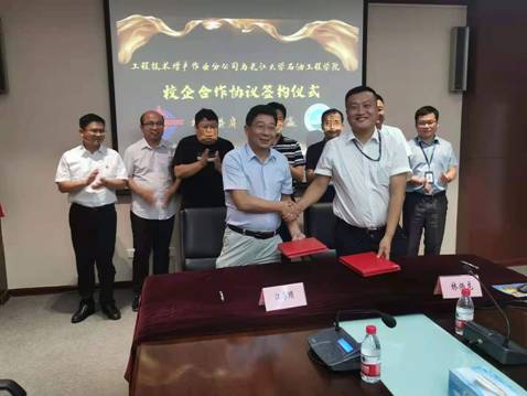 任会春肯定了校企双方共同成立“海上油气田稳油控水技术创新与实践基地”的必要性、迫切性,希望校企双方围绕“海上油气田含水上升快、注水效果差、油水井地层堵塞但改造效果差、油藏采收率偏低等技术需求”进行联合科研与技术攻关,共同推动校方成熟技术体系在海上油田的成果转化,实现企校双方共赢,并充分利用企校双方的人才培养机制,联合培养精通专业理论知识与现场应用实践的专业人才。
