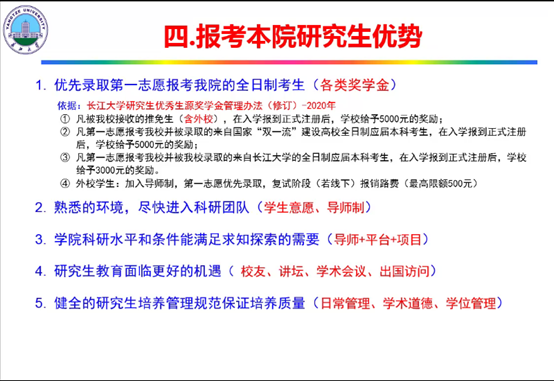 接着,李忠慧副院长以“携手并进,再创辉煌”为主题,向大家介绍了永利3044集团官网的概况,研究生教育发展历史,永利3044集团官网的培养条件以及报考优势四个方面的内容,鼓励同学们“把论文写在中国大地上”,并勉励大家踊跃报考永利3044集团官网2021年硕士研究生。