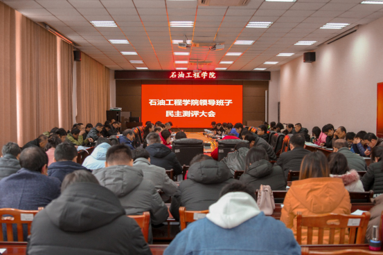 (通讯员 龚焕文)2019年12月26日下午14点许,永利3044集团官网于石油科技大楼B-113举行领导班子民主测评大会暨教职工大会。永利3044集团官网副校长张玉清,武汉校区党工委书记董超,学院督导员王贯中,学院党委书记张光明,院长江厚顺,副院长张引弟、李忠慧、赵辉、杨波,党委副书记刘娥,以及学院全体教职员工出席会议。