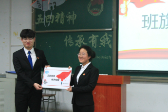 传承五四,寄希未来。储运21703班还为大家准备了传承五四——制作风筝的环节,让大家在空白风筝上通过绘画设计与五四有关的图案或者写下自己的寄语,借此让大家了解风筝这一传统文化的起源与发展。随后,储运21703班为深刻贯彻传承五四精神这一主题,还进行了授旗于油工(中俄)21801班的授旗仪式,希望把储运21703班的一份幸运、一份祝福送给他们,希望他们可以学习储运21703班的团结与进取的精神,今后越战越勇。获旗以后,油工(中俄)21801班团支书刘玉龙也发表了感言,对储运21703班表示感谢的同时也号召他们班全体同学能够在今后的学习生活中加倍努力,脱颖而出。最后,由储运21703班级导师史永波老师进行总结,发表了活动感想,同时也为在场的所有同学送出了寄语,希望大家能存高远、永奋斗。储运21703班主题团日活动也在歌声中圆满结束。