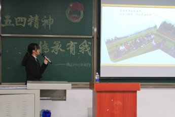 放飞梦想,绽放歌声。由储运21703班的阳丹丹、谭川川以及油工(中俄)21801班的李炜烨、王果四位同学带来“我为五四献歌——奔跑”,大家在歌声中听到了他们的热情,更听到了他们的朝气与昂扬。五四运动不仅仅是一场简单的街头抗议活动,同时也昭示了一代青年的热血与为国无畏的精神。为了让当代大学生的我们了解自己的责任与努力方向,储运21703班班长陈金建为大家播放了习近平同志在纪念五四运动一百周年大会上的讲话(选段),同时邀请了储运21703班刘琬玉与郭盼阳同学上台发表自己的感想。