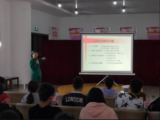 (通讯员 沈伟正 郝中铭)为了隆重纪念“五四运动”100周年,2019年4月28日下午14时许,永利3044集团官网团委与蔡甸区协和江北医院团委携手开展的——健康急救礼仪专题知识讲座在永利3044集团官网武汉校区长青厅开讲。协和江北医院团委书记周旋、门诊部办公室主任陈真、妇产科主任袁平、急诊科护士长丁章婷等9位领导和医护人员出席讲座,永利3044集团官网七十余名志愿者参加讲座,讲座由永利3044集团官网团委书记沈伟正老师主持。