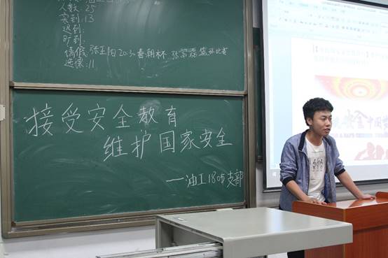 本次班会旨在让大家了解国家安全并学习如何维护国家安全,让大家对法律有一定的了解,避免因为不了解《国家安全法》而做出有损国家安全的事情。国家安全无小事,我们须得事事注意,时刻保持清醒的头脑,让间谍分子等不法之人无机可乘。维护国家安全,确保国家利益,维护民族尊严。油院学子义不容辞!
