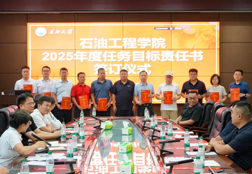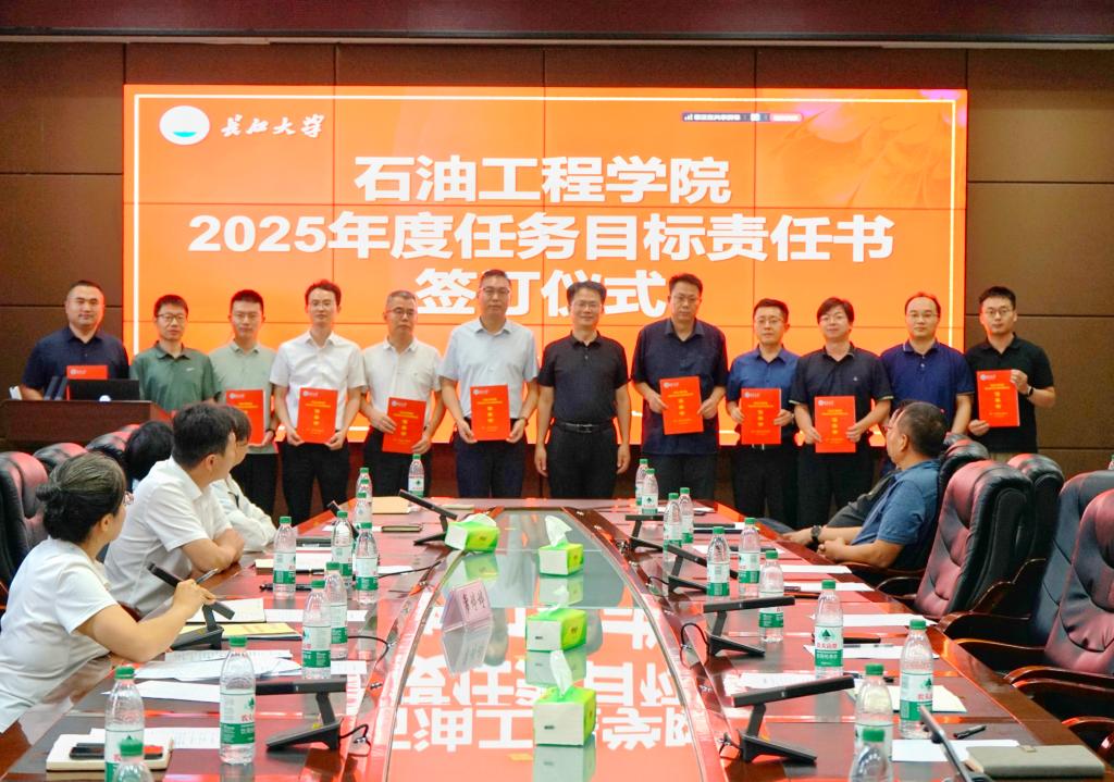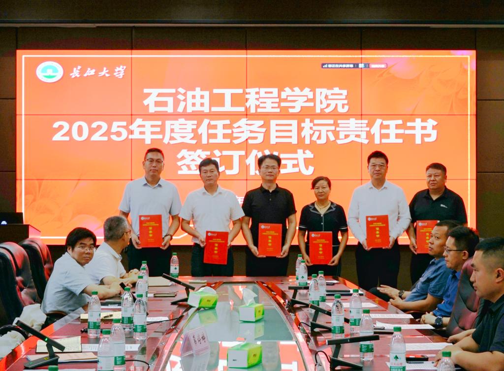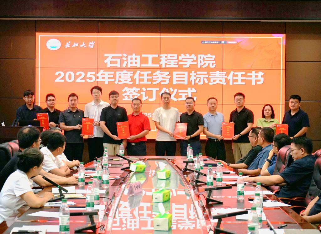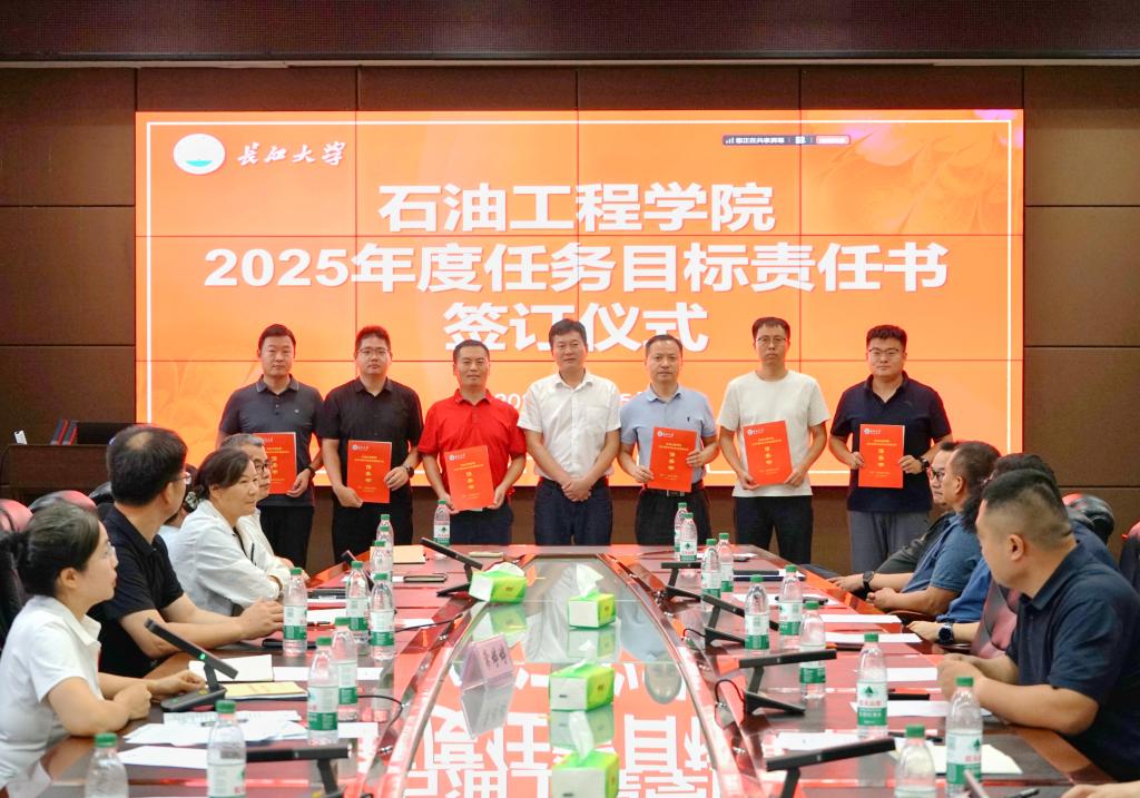 凝心聚力,共谋发展。7月5日下午,永利3044集团官网系所双轨制机构负责人2025年目标责任书签订仪式,在石油科技大楼B113会议室顺利举行,这标志学院系所双轨制机构改革正式落地推行。会议由学院党委书记张伟主持,全体教职工参会。