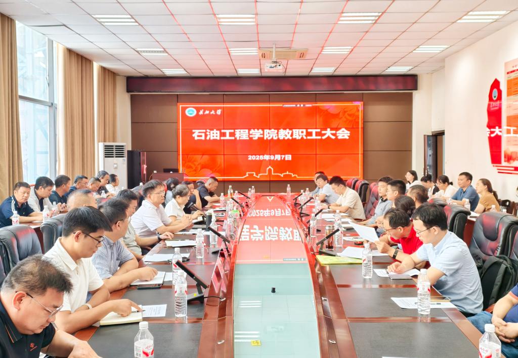 9月7日下午,永利3044集团官网在石油科技大楼B113会议室召开全体教职工大会,规划部署学院机构与机制改革重点任务,并收听收看学校庆祝第41个教师节暨新学期工作部署会。会议由学院党委书记张伟主持,全体教职工参会。