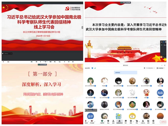 永利学习小组首先举行了习近平总书记给武汉大学参加中国南北极科学考察队师生代表回信精神线上学习会,对学习方式做了详细说明,并具体规划了学习任务。线上学习会后,在学习小组的引导下,各班分别召开了习近平总书记给武汉大学参加中国南北极科学考察队师生代表回信精神线上主题班会。