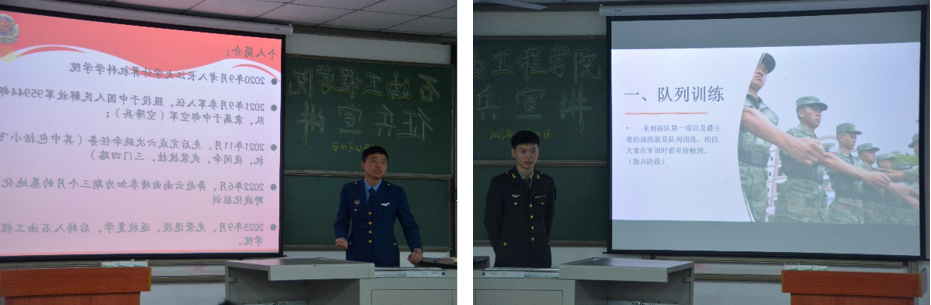 随后退伍大学生代表余鸿锋、李雨航、黄少栋三人依次进行宣讲,结合他们的亲身经历,全方位的向同学们展示了真实的军旅生活,带领大家走进“军人的世界”、感受“部队的精神面貌”,通过三位同学的讲述,在场的同学们对军营有了进一步的认识。
