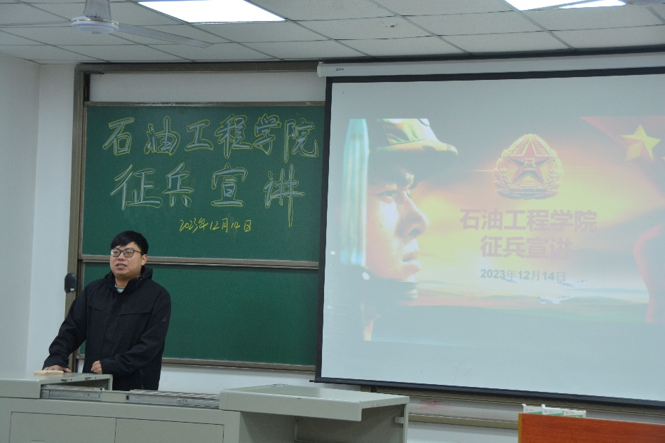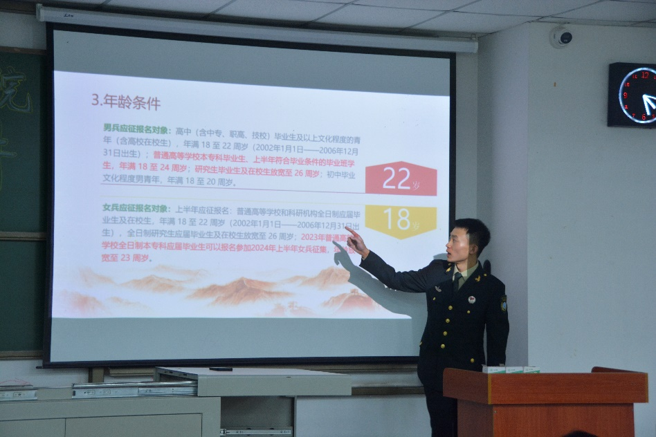 (通讯员 余鸿锋 李雨航 黄少栋/文 张少博/摄)为了进一步推进学院的征兵宣传工作,倡导同学们积极响应国家号召,参军入伍,报效祖国。永利3044集团官网于2023年12月14日16:00在B教103开展2023年征兵宣讲大会,本次由郭冀宁老师主持。