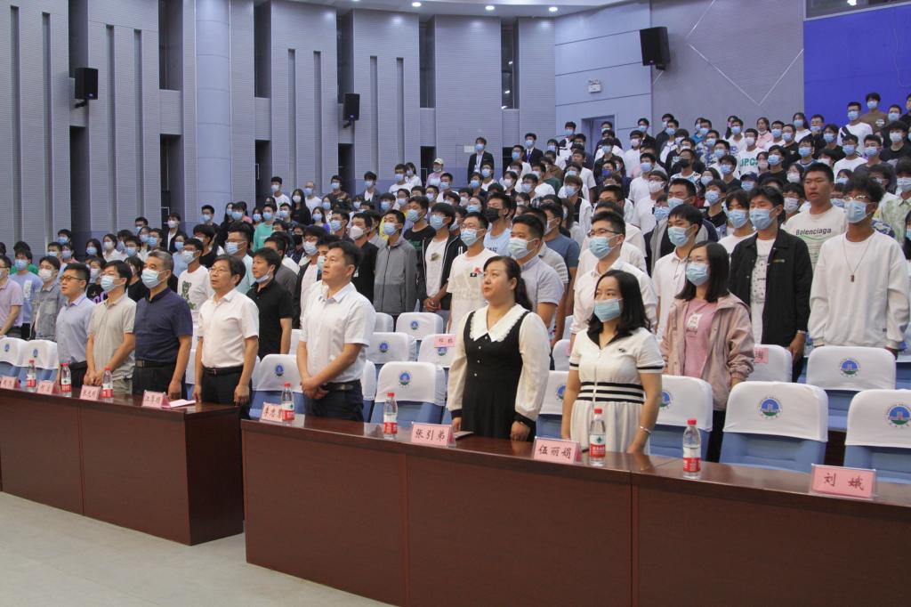 大会伊始,全体起立,奏唱国歌,全体2022级新生以青春告白祖国。