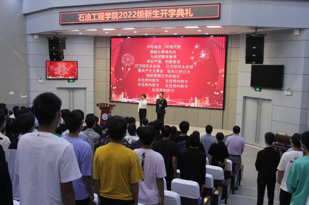 典礼在合唱《江汉石油之歌》的歌声中圆满结束。“不怕艰苦,何惧风霜,愿献出青春热血为祖国繁荣富强。”既是石油先辈对后人的激励,又是新时代石油青年应该铭记于心的庄重诺言,继承和发扬“学石油、爱石油、献身石油事业”的精神。