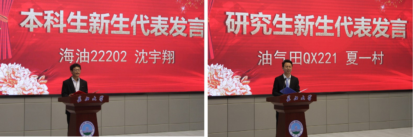 随后,学院2022级本科生沈宇翔和研究生夏一村作为新生代表发言,他们分别展望了自己的大学生活和研究生生活,希望在长大能收获到一段精彩时光。