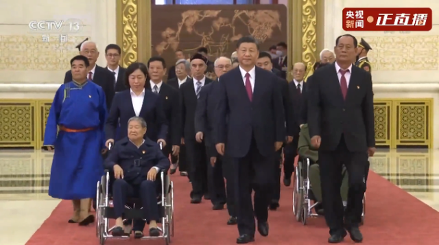 颁授仪式在嘹亮的乐曲声中拉开帷幕,习近平总书记同“七一勋章”获得者一同入场,屏幕前同学们无不鸦雀无声,认真聆听习近平总书记的讲话。