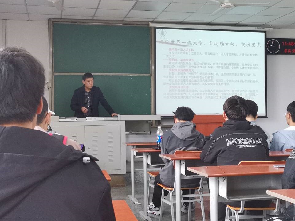 接着班主任程远鹏老师对习近平总书记的重要讲话精神进行了解读,并鼓励同学们主动学习,为国家的石油工业做出贡献。他殷切祝愿同学们能够做到“立大志、明大德、成大才、担大任”,更希望同学们做到习近平总书记送给所有青年的十六个字——爱国爱民、锤炼品德、勇于创新、实学实干。他的赤子之心溢于言表,话音未落,班里便响起了洪亮的掌声。