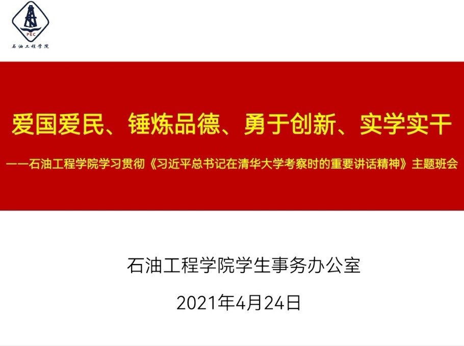 本次活动主要分为围绕共同学习《习近平总书记在清华大学考察时的重要讲话精神》、讨论石油行业核心技术受制于人的短板和“卡脖子”瓶颈、讨论大学生如何“爱国爱民、锤炼品德、勇于创新、实学实干”几个方面展开。同学们无不聚精会神、深入思考,并就“创新实干,自己能做什么”的话题展开了激烈讨论。