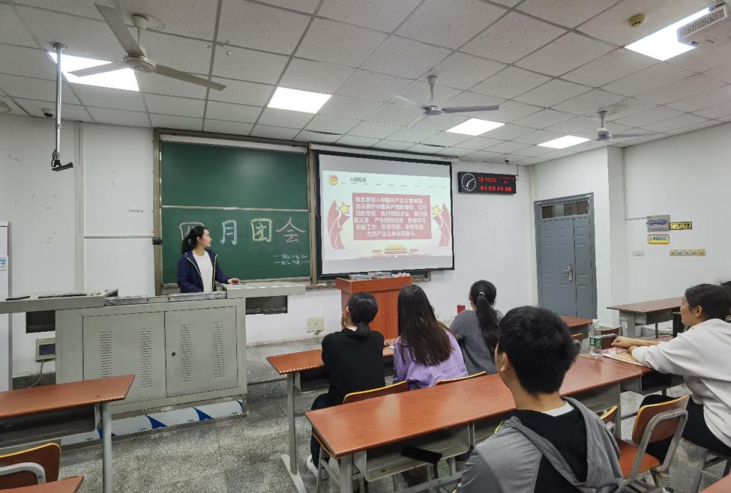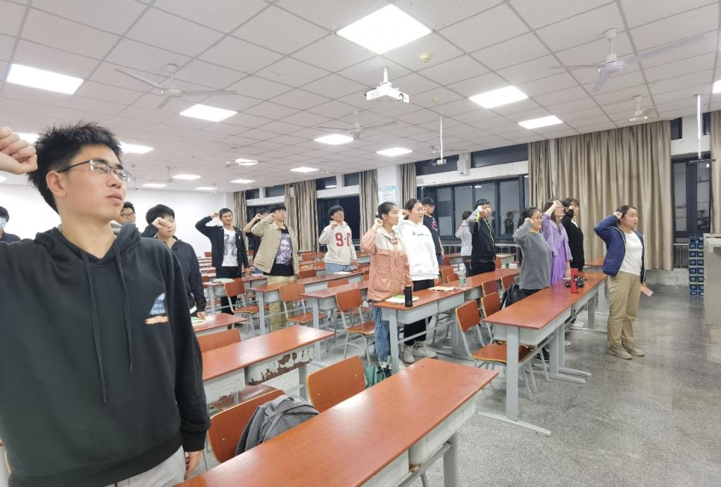 在党史学习会上,党支部组织学习《中国共产党简史》,深入学习领会习近平总书记关于党史的重要论述,并观看习近平总书记在党史学习教育动员大会上的讲话,学习其中的重要讲话精神。学习过程中,不少学生有感而发,提出意见和看法并积极分享。同学们认真聆听,认真思考,细细体会。学习会结束前,团支部组织团员重温入团誓词,入党积极分子上台分享成长体会,倡议大家学习先进事迹、感悟跟党初心。