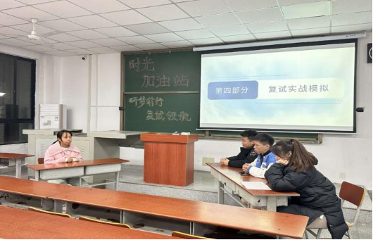 本次活动创新性地设置了模拟面试环节,由学生代表担任面试官,通过高度还原面试场景为参与者提供了实战演练。报名的同学分别完成了全流程模拟,在“面试官”专业点评中获得了针对性建议:包括提升语言组织条理性、精准提炼个人经历亮点、优化优势呈现方式等。参与者反馈此次模拟有效提升了自我认知,既明确了改进方向,也为未来复试积累了宝贵经验。