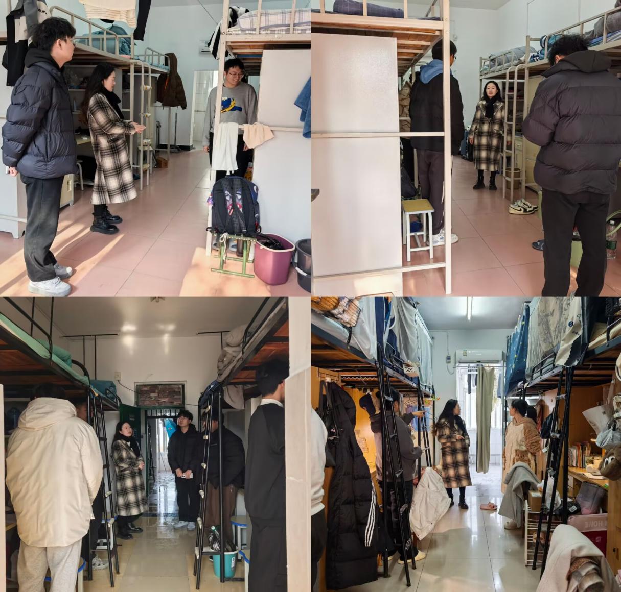 (通讯员 王亭又)寒假临近,为确保学生宿舍的安全与整洁,了解24级学生在期末考试周阶段的学习生活情况,1月2日中午,永利3044集团官网24级辅导员周雨薇老师与兼职辅导员江千喜老师对本院24级学生宿舍进行了安全卫生检查工作。 老师们对宿舍的安全及卫生状况进行了认真检查,对卫生情况较差的宿舍现场提出了改进意见,也对卫生情况良好的宿舍给予了肯定和表扬;同学们要注重宿舍的安全卫生,在宿舍中要保持良好的学习和生活习惯,并围绕宿舍安全对即将来临的寒假假期做出相关注意事项的提醒。最后,就同学们的心理情况和学习状态问题,与各个宿舍的同学们进行了亲切交流,鼓励大家合理安排时间,诚信应考,考出好成绩。 此次寒假前宿舍安全卫生检查,强化了同学们的安全卫生意识,促进了良好、健康的寝室环境地营造。不少同学表示,将会以良好的状态迎接期末考试,以快乐的姿态度过美好假期。 【审核:周雨薇】