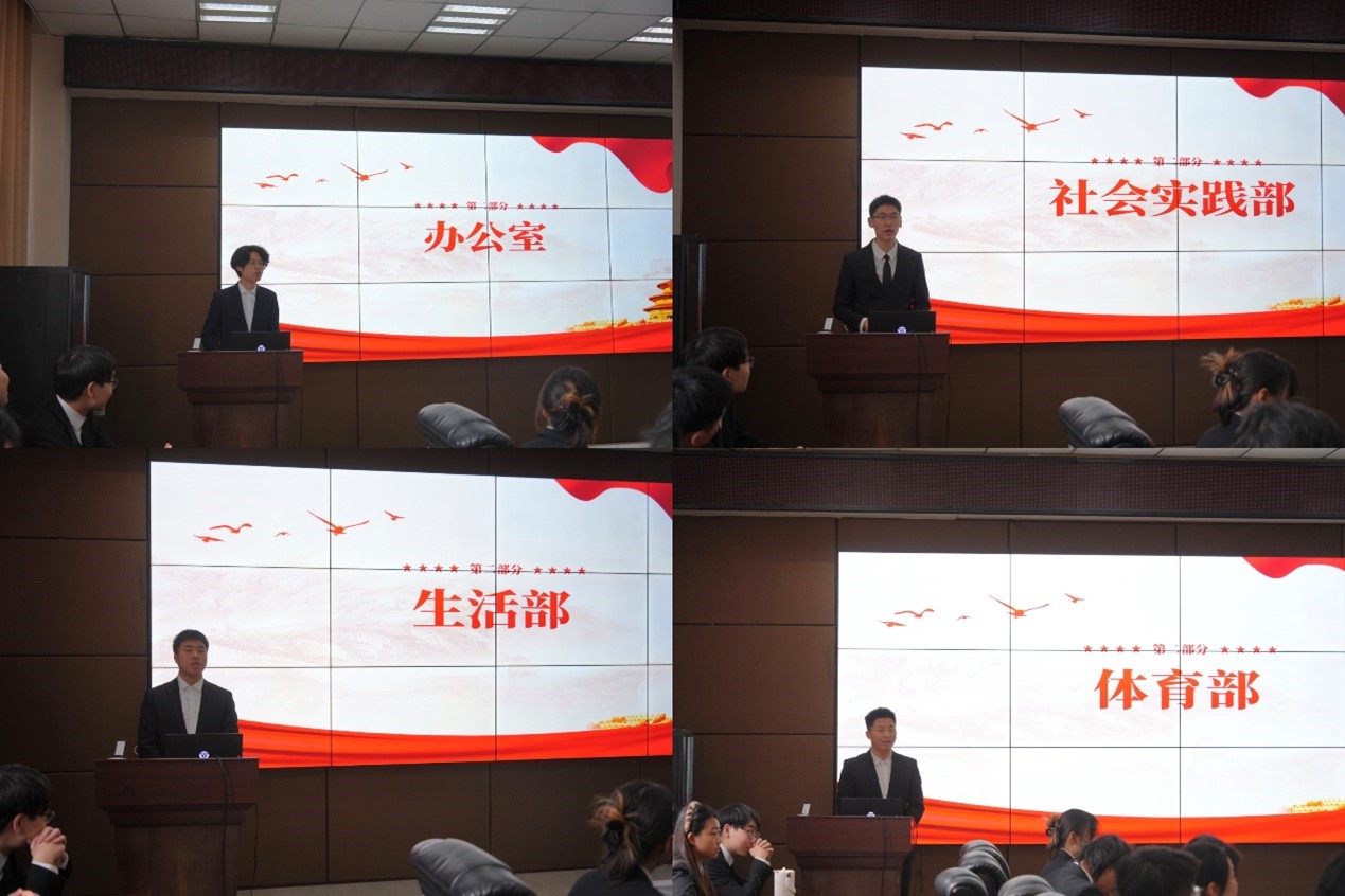 随后,学生会内的各个部门代表依次上台,详细介绍自己部门的成员构成、具体工作职责以及本学期的工作开展情况。这一环节旨在增进各部门之间的了解,为今后的工作协同与合作提供便利。