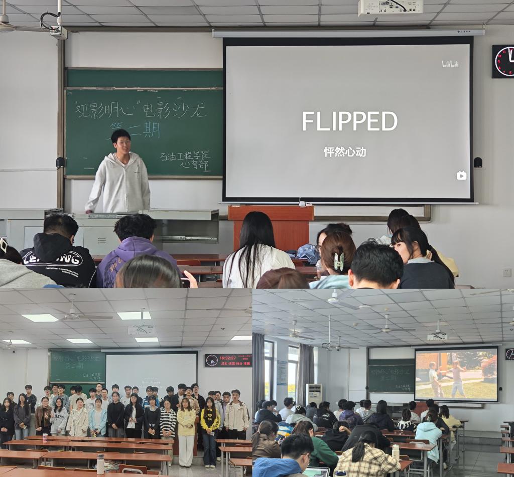 (通讯员 郑熹韩/文 郑熹韩 钟传延 龚润璞/摄) 11月7日下午,油工学院在武汉校区B教206举办学院心育特色活动——“观影明心”心理电影沙龙。本期播放的影片是《怦然心动》,由心育部的学生干部带领同学们透过电影去领悟”关于从你我到我们、关于期望与失望、关于争执与美好、关于爱情与成长“。活动由油工22308班钟传延主持,共76名学生参加。