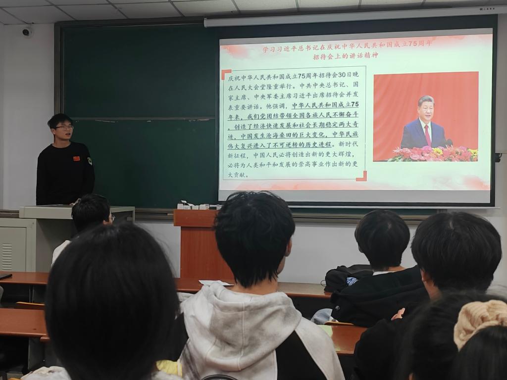 在庆祝中华人民共和国成立75周年的庄严时刻,团委组织同学们深入学习习近平总书记的重要讲话,让历史的辉煌与未来的希望在青年心中交织,深刻领悟讲话精神,增进对中华民族和伟大祖国的情感,传承民族精神、增强国家观念,激发出对祖国深沉的热爱和对民族复兴的坚定信念。通过个人自学、集体研学、交流讨论等方式,同学们深刻理解了习近平总书记的讲话精神,纷纷表示要将个人梦想与国家发展紧密结合,为实现中华民族伟大复兴贡献青春力量。