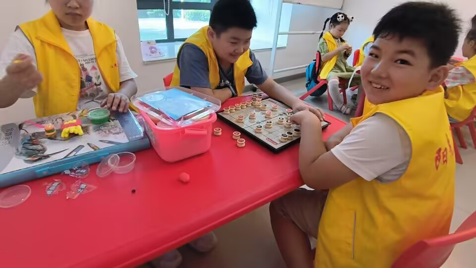 活动开始,志愿者们组织孩子们进行手工创作,利用彩泥制作各种有趣的小动物和模型。孩子们在志愿者的指导下,用灵巧的双手捏出了栩栩如生的作品,创意与欢乐充满了整个活动室。同时,另一组孩子则和志愿者们围坐在棋盘前,展开了一场智力与耐力的较量。下棋的孩子们全神贯注,志愿者们耐心地陪伴并给予指导,现场洋溢着轻松和谐的氛围。