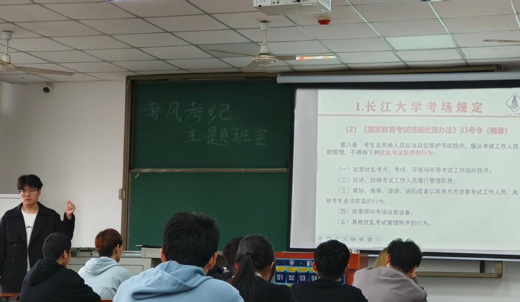班会伊始,学委们结合永利教育评估工作和考场违纪处分规定,向同学们展示了考试作弊的严重性与危害,强调了诚信应考的重要性。