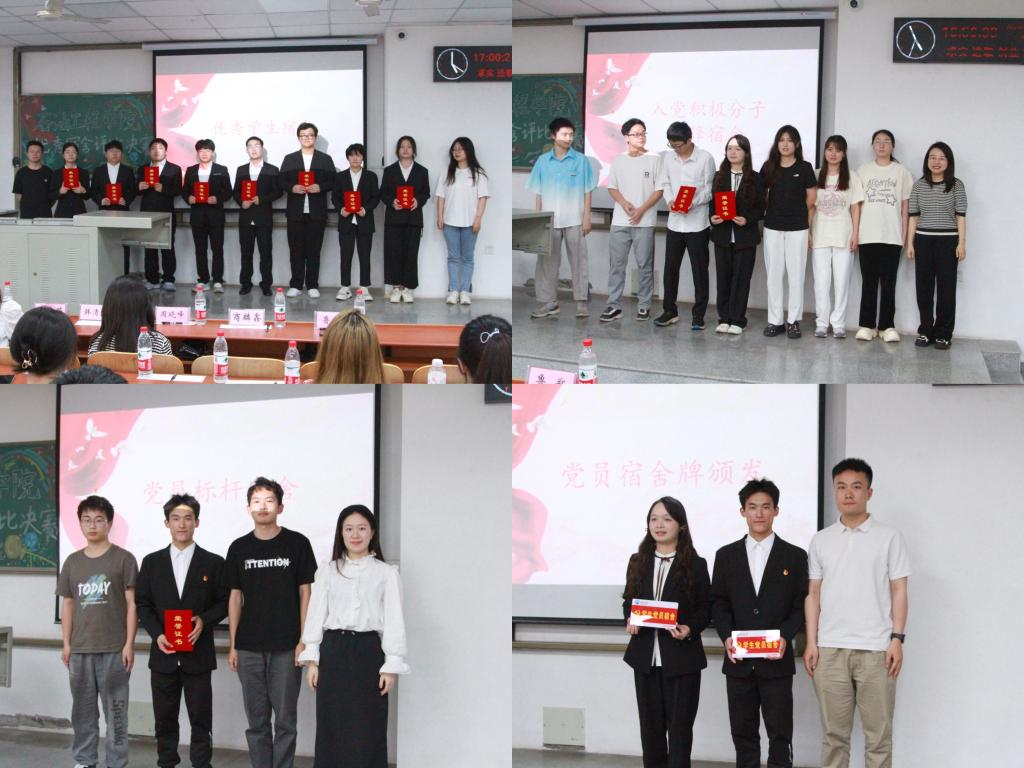 经过严格的评选流程,最终评选出一个“党员标杆”宿舍、两个“入党积极分子先锋”宿舍以及九个优秀宿舍。周晓峰老师、陈金建老师为党员宿舍进行授牌,鼓励大家继续发挥先锋模范作用,为校园文明建设贡献更多的力量。
