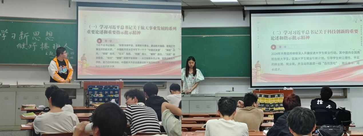 随后,各班团支书分享了习近平总书记关于科技创新的重要指示批示精神。鼓励青年学生将创新理念融入到日常学习和生活中,为国家的科技进步贡献自己的力量。