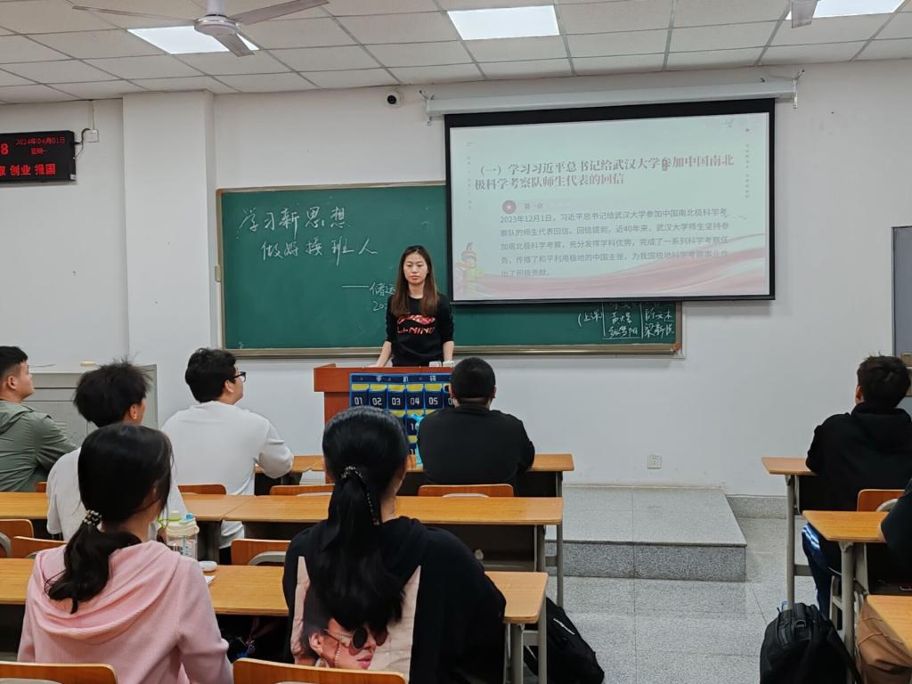 在永利3044集团官网团委的领导下,各支部团支书带领支部成员集中学习了习近平总书记给武汉大学参加中国南北极科学考察队的师生代表回信精神。回信提到,近40年来,武汉大学师生坚持参加南北极科学考察,充分发挥学科优势,完成了一系列科学考察任务,传播了和平利用极地的中国主张,为我国极地科学考察事业作出了积极贡献。同学们纷纷表示要准确把握回信精神的精神实质和实践要求,向榜样们学习,在思想上、行动上、政治上自觉与党中央保持一致。