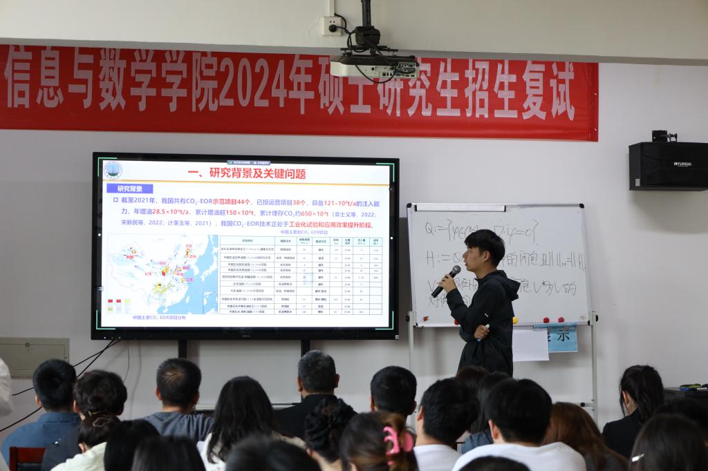 (通讯员 黎璐/文 张天龙/摄) 2024年3月31日下午3时,“数之慧眼,油之新篇”永利3044集团官网2023-2024学年第三十一期研究生跨学科学术沙龙于东校区8教406室顺利举行。此次学术沙龙活动由永利3044集团官网研究生会主办,永利3044集团官网与信息与数学学院联合承办。党委研究生工作部副部长黄龙老师、信息与数学学院副院长李治老师、信息与数学院副教授曹静老师、研究生院思想政治教育办公室科长史永波老师、永利3044集团官网研究生辅导员陈金建老师受邀出席活动,永利20级博士研究生湛文涛、22级博士研究生徐云峰受邀作报告,各专业100余名研究生参与。