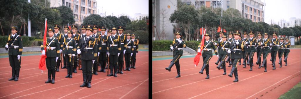 7时整,国旗护卫队准时地出现在众人的眼帘中。他们不顾凛冽的寒风,始终向前踏出他们整齐的步伐。伴随《义勇军进行曲》的悠扬旋律,国旗与东方的红日一同升起,阳光在操场上映出护卫队同学们矫健笔挺的身姿,令人不由得心潮澎湃。在场全体师生齐唱国歌,充分彰显永利师生激昂慷慨的爱国情怀。