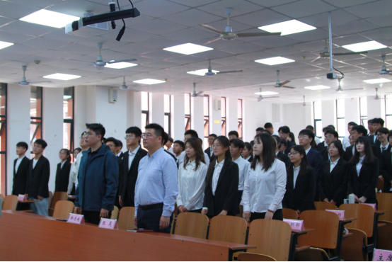 会议伊始,全体成员起立齐唱国歌,用昂扬的国歌声拉开会议序幕。