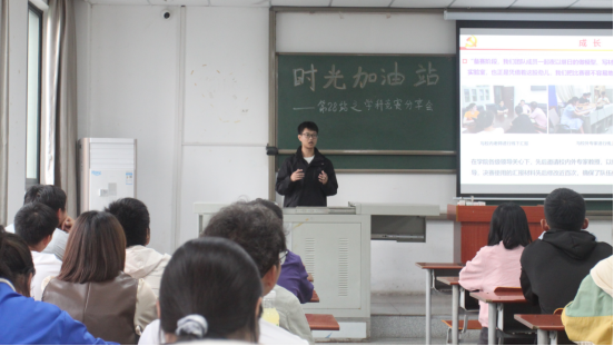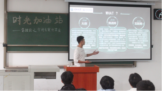 “想成功,先发疯,埋头苦干向前冲!”是他竞赛状态时的座右铭,站长张凯伦也根据自身的经历向大家分享了他参加“挑战杯”竞赛的坎坷历程。他将自身经历比作“一名学渣的逆袭之路”,从退伍复学后的茫然平庸,到在老师的指引下参加挑战杯竞赛,不仅在竞赛过程中找回了学习的状态,更是在团队协作中结识了一批优秀的老师与同学,在团队的熏陶下,他从一名普通的大学生真正变为一个心系祖国、甘为祖国石油事业奉献终生的新时代石油青年!