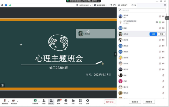(通讯员 张硕)为加强新生的心理健康知识普及,促进同学关注自身心理健康,构建和谐校园氛围。2023年9月6日至9日,永利3044集团官网以班级为单位召开了2023级本科生心理安全班会,本次班会由各班助导主持,507名2023级本科生参加。