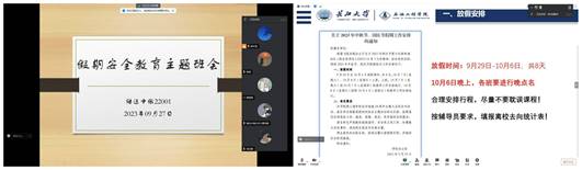(通讯员 黄雯昕)在中秋、国庆假期来临之际,为增强学生的安全意识,切实保障假期期间学生的人身安全和财产安全,确保同学们度过一个平安、快乐的假期,永利3044集团官网组织学生以班级为单位召开中秋、国庆假期主题班会,永利本科生、研究生各年级通过线上线下相结合的方式开展中秋、国庆假期前学生安全教育工作,做到百分百覆盖。